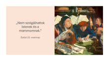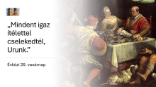 Melyiktek mondja béresének vagy bojtárjának, amikor a mezőről hazajön: »Gyere ide tüstént és ülj asztalhoz.« Nem ezt mondja-e inkább: »Készíts nekem vacsorát, övezd fel magadat és szolgálj ki, amíg eszem és iszom! Aztán majd ehetsz és ihatsz te is?« S talán megköszöni a szolgának, hogy teljesítette parancsait?